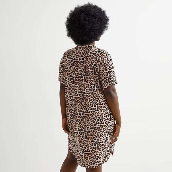 Tunic in a viscose weave with a small stand-up collar and V-neck opening at the front. Dropped shoulders, short sleeves and a rounded hem with slits in the sides. Slightly longer at the back. Unlined