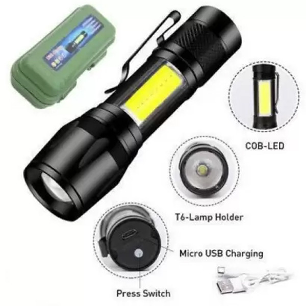 Features: This flashlight is great for boating, camping, household, emergencies, auto repairs and workshop use. Super bright XPE+COB light, energy saving. Made of high grade material, solid construction. Mini and compact design, easy to carry. With high quality and durable performance. Package Included: 1 x Flashlight 1 x USB Cable. Note: Please allow minor error due to manual measurement. The colors may be a little difference for the different monitor display. Product type: Outdoor Lighting " " Specification: 100% brand new with high quality Material: Aluminum Alloy Size: Approx.8.7x2x2 (Height x Head Diameter x Tail Diameter) Weight: Approx.44g Bulb: XPE + COB LED Battery: Built-in 14500 battery Charging Type: Micro USB Charging Switch: Tail press switch 3 Modes: XPE High Light-XPE Flash-COB High Light Features: This flashlight is great for boating, camping, household, emergencies, auto repairs and workshop use. Super bright XPE+COB light, energy saving. Made of high grade material, solid construction. Mini and compact design, easy to carry. With high quality and durable performance. Package Included: 1 x Flashlight 1 x USB Cable. Note: Please allow minor error due to manual measurement. The colors may be a little difference for the different monitor display. Product type: Outdoor Lighting