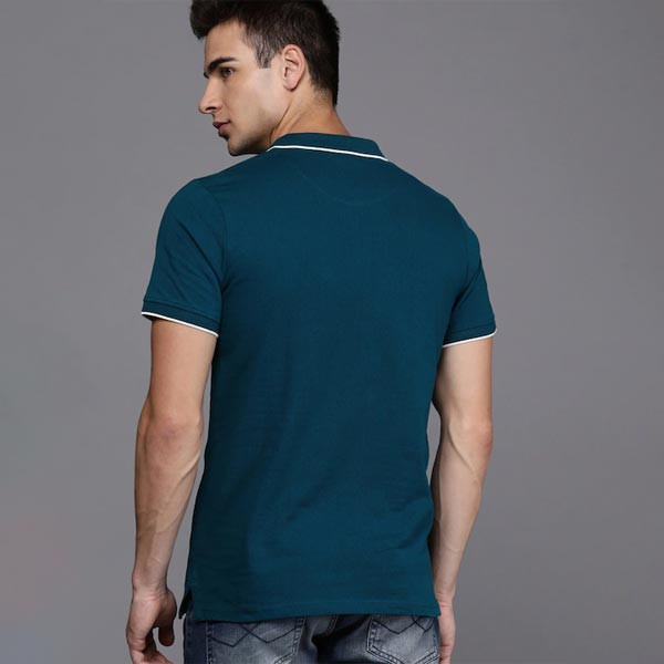 Green solid T-shirt, has a polo collar, short sleeves
