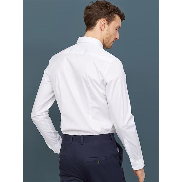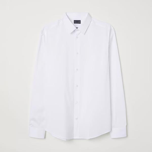 Shirt in a stretch weave made from a cotton blend with a collar and classic front. Long sleeves with adjustable buttoning at the cuffs, and a gently rounded hem. Slim Fit a fit with narrow shoulders and a tapered waist for a fitted silhouette Material & Care 78% Cotton, 19% Polyamide, 3% Elastane Machine-wash