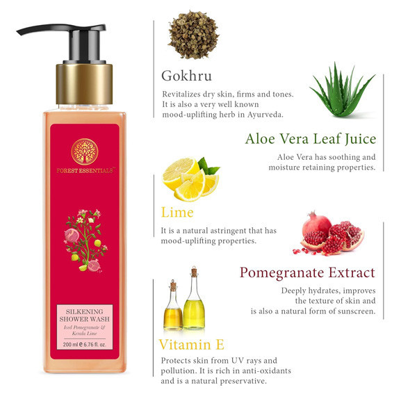 With Essentials Silkening Shower Wash Iced Pomegranate & Kerala Lime, skin is left glistening, clean and hydrated. The fresh blend of antioxidant rich Pomegranate and Lime leaves skin lightly scented with subtle, citrus notes.