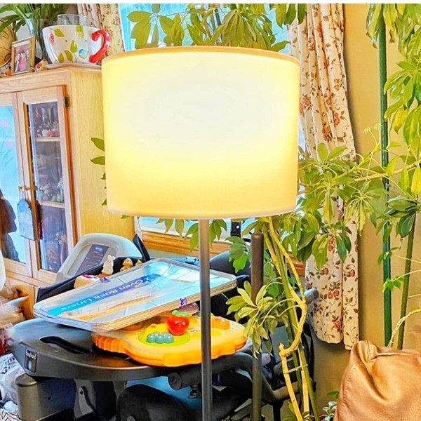 Whether you read books in a recliner, or work at a desk, the standing lamp fits easily beside your furniture. Its slender design allows it to position well near love seats, sofas, armchairs, side tables